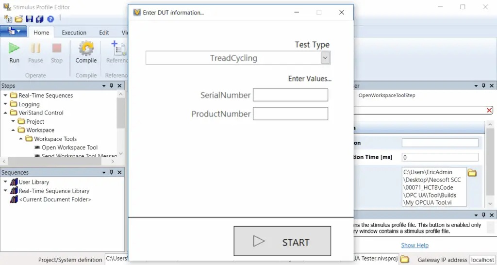 In addition to all this, when executing real-time stimuli and sequences to run automated test scenarios in VeriStand, the Stimulus Profile Editor offers an interesting feature: the “Open Workspace Tool” step.
